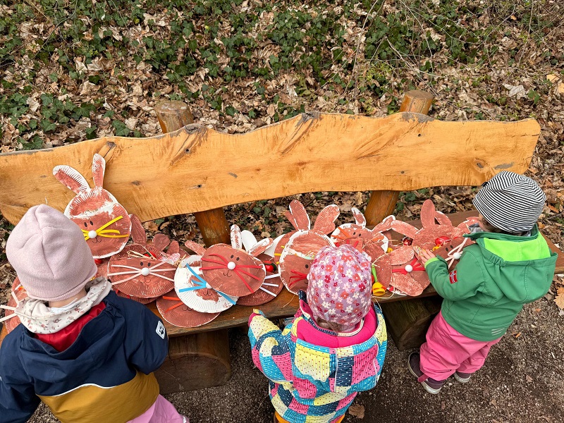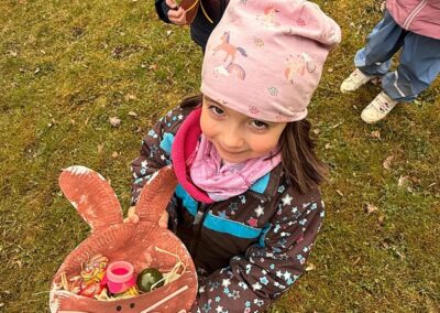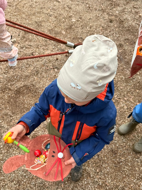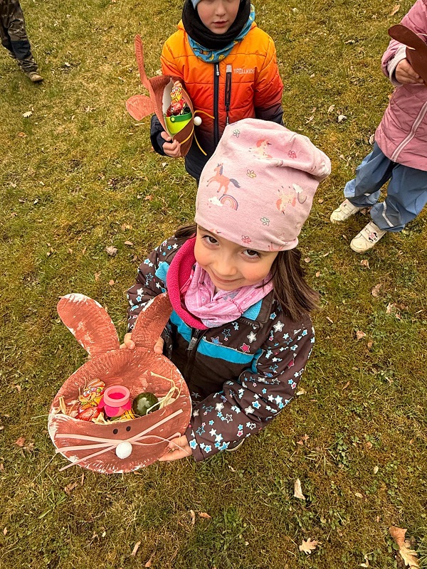 Das Wetter war heute schön und die Kinder des Kinderhauses konnten im Garten spielen, gingen spazieren oder auf den Spielplatz. Doch was war das? Was lag da unterm Baum versteckt? Tja, der Osterhase hat sich in diesem Jahr was ganz besonderes überlegt. Er hat euch für die Osterfeiertage ein bisschen „Reiseproviant“ ins Osterkörbchen gelegt und draußen im Freien versteckt.
