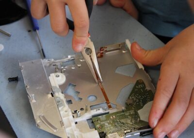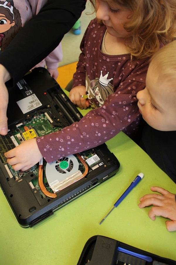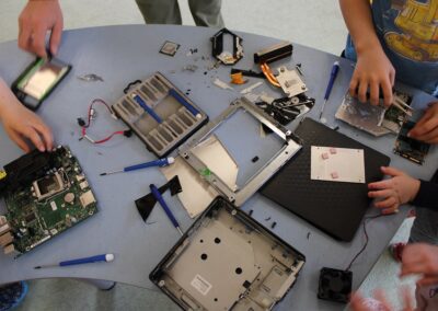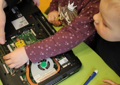Unter seiner Anleitung konnten die Kinder sogar einen Laptop vorsichtig auseinanderschrauben. Mit viel Geduld und Geschick sowie dem passenden Werkzeug haben sie anschließend alle Teile wieder zusammengesetzt – und tatsächlich ließ sich der Laptop am Ende wieder starten! Das war ein tolles Erfolgserlebnis und zeigte, wie sorgfältig die Kinder gearbeitet haben.