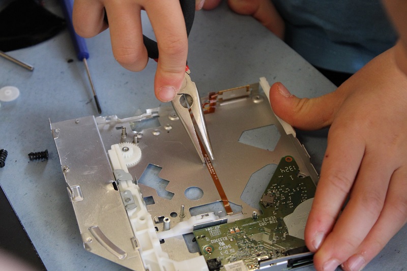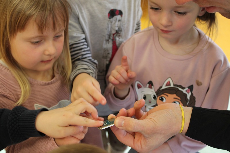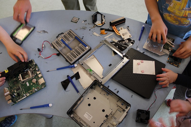 Außerdem durften die Kinder einen Prozessor genauer unter die Lupe nehmen. Dabei bauten sie unter anderem den Kühler sowie das CD-Laufwerk und den Laser aus. Es war spannend zu entdecken, was sich alles im Inneren eines Computers verbirgt. Besonders gestaunt haben die Kinder über die winzigen Schrauben und das feine Werkzeug, das dafür benötigt wird.