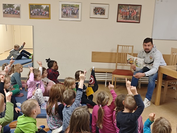 - Unser Kunstrasenplatz mit integriertem Basketballkorb lädt alle kleinen Sportler zum fighten ein. Zum Erlernen der Spielregeln bieten wir eine SportAG „Fußball“ an.